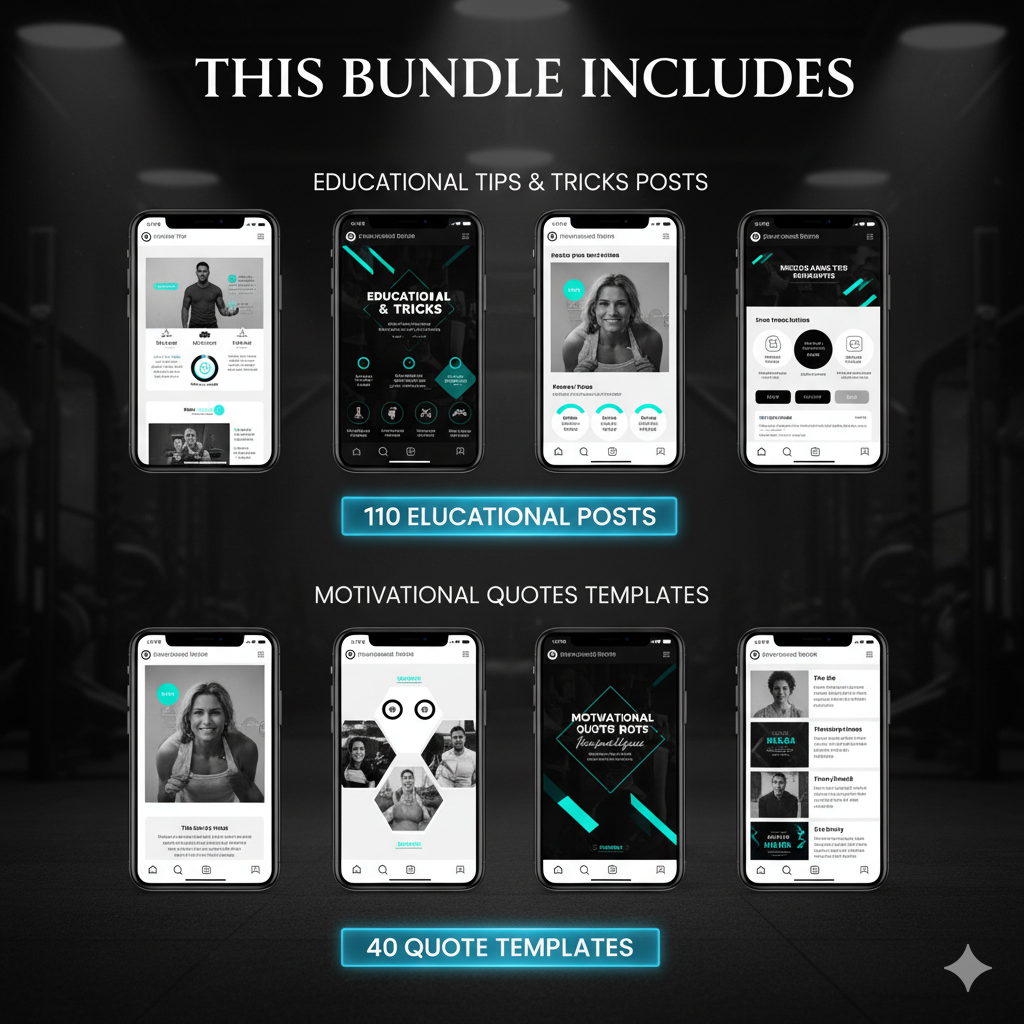 Build a powerful and professional Instagram presence with this 1100+ Fitness Instagram Templates Bundle designed for gyms, personal trainers, wellness coaches, and fitness creators.